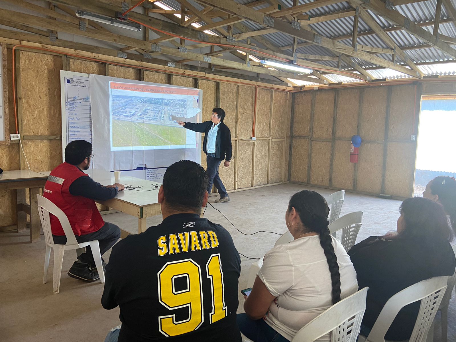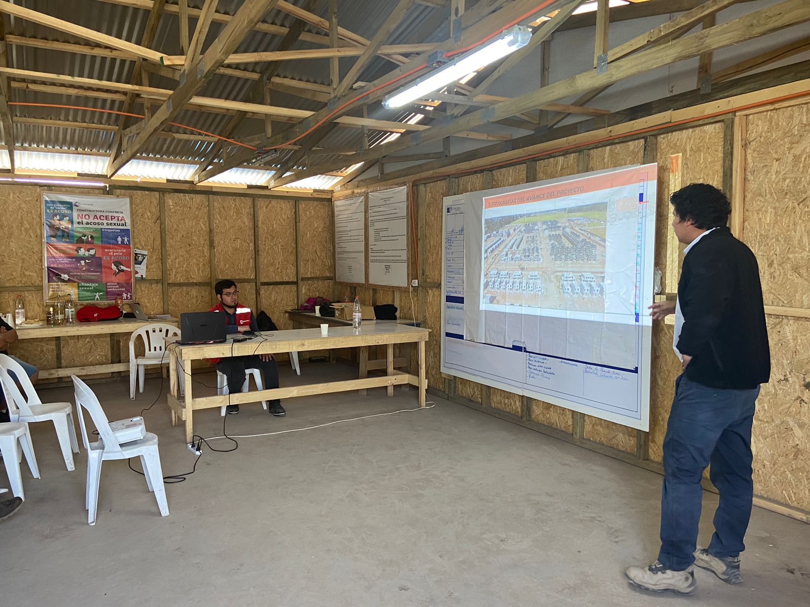 La reunión comenzó con la presentación del administrador de obra Mathías Vargas quien explicó que el proyecto cuenta con un avance del 43,34% (72% de avances en obra gruesa y un 30% en cuanto a urbanización).