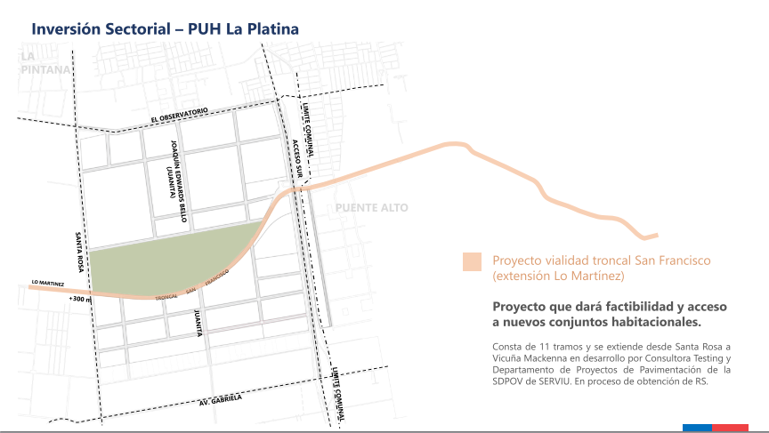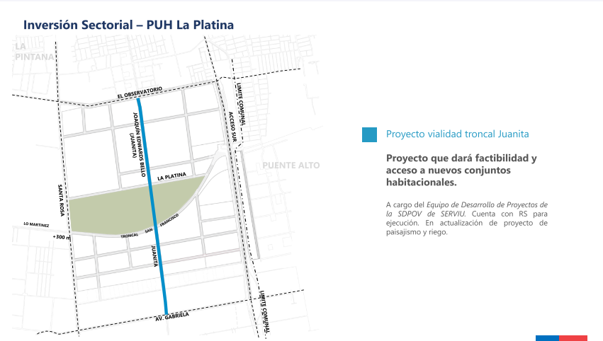 El equipo SERVIU informó de la Inversión Sectorial que comprende las Macro Infraestructuras, donde Troncal Juanita y Troncal San Francisco son parte fundamental de las vialidades que darán conectividad al sector de La Platina.