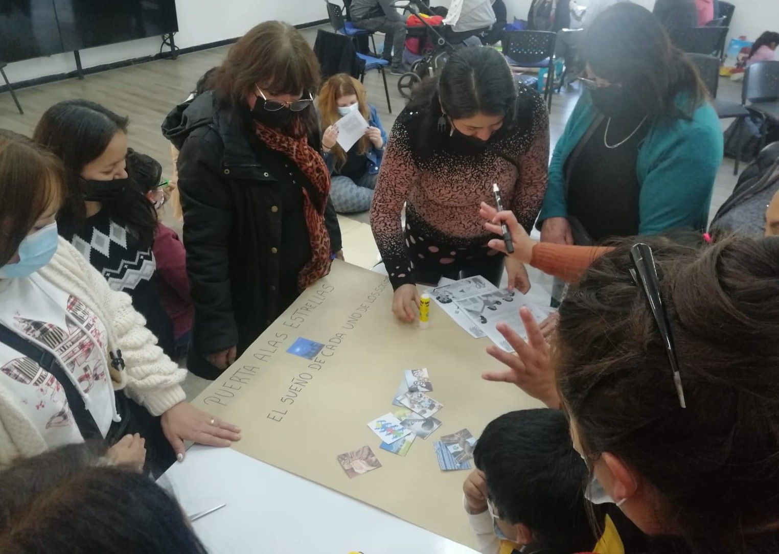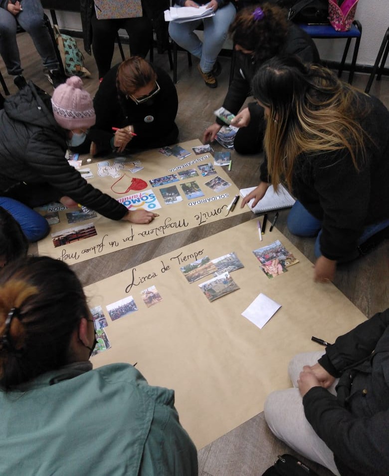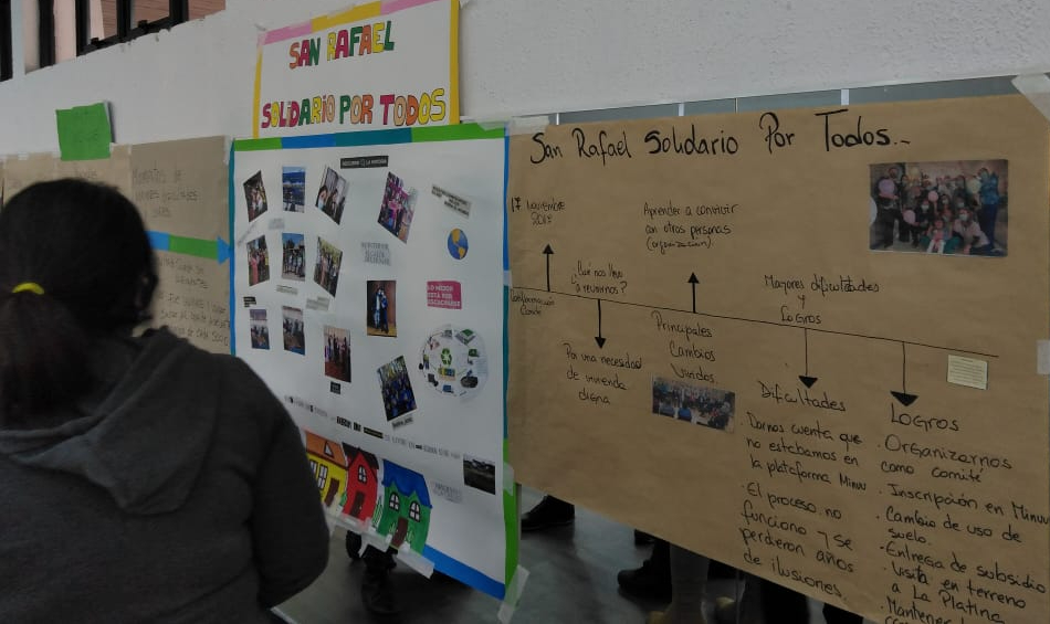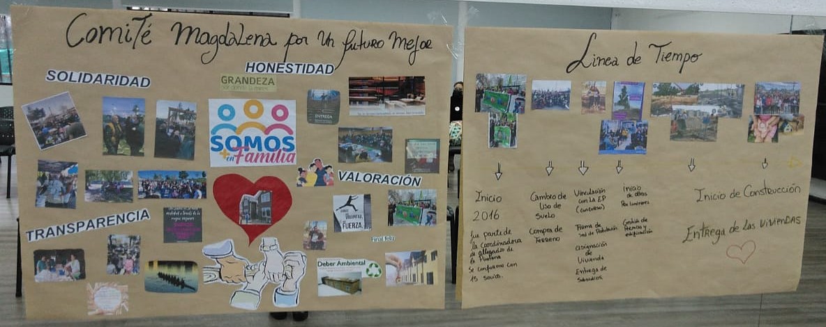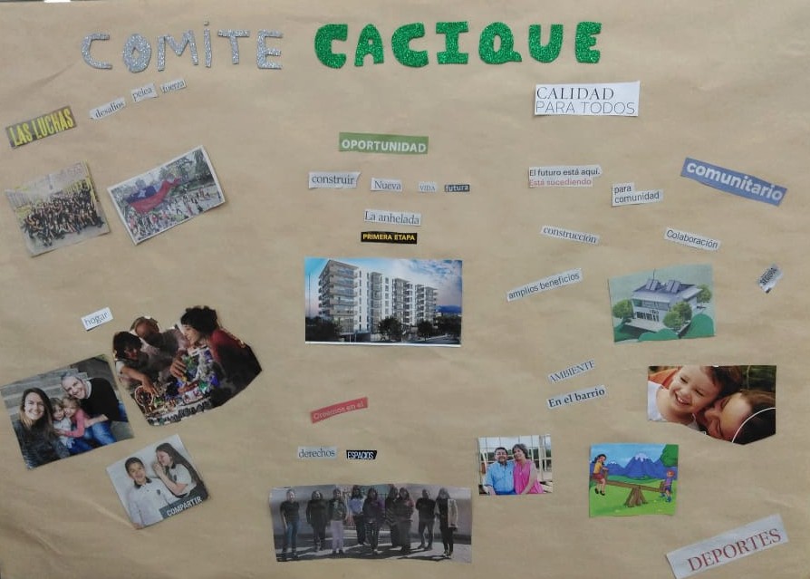 A través de recortes, dibujos y gráficas realizadas por los integrantes de cada comité hemos ido acercándonos un poco más a la comunidad, conociéndonos entre nosotros y comenzando a crear lazos para un buen vivir en el futuro Proyecto Urbano Habitacional La Platina. Con el fin de acercarnos y conocer más de cada comité se han realizado actividades de integración comunitaria donde los vecinos y vecinas tienen un espacio para compartir como grupo y también compartir con los otros comités, aprendiendo de sus propias historias y maneras de luchar para en conjunto conseguir la tan anhelada vivienda propia.